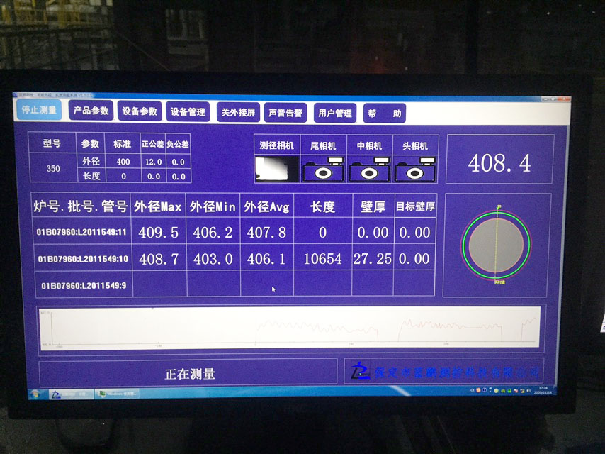 在毛管生產中,品質檢測是重中之重,隨著產線的升級,離線檢測已不能滿足生產狀態,因此為某鋼管廠定制了在線測徑測長儀。