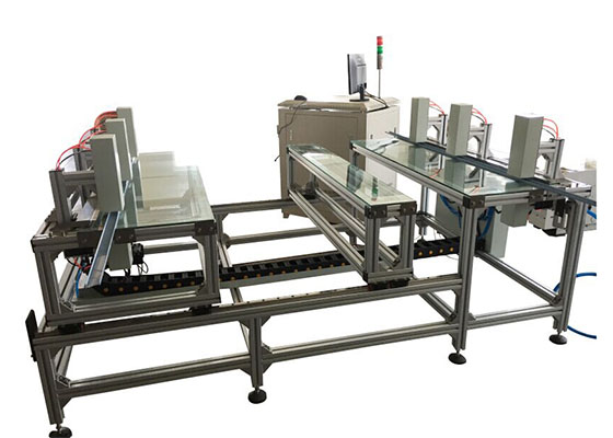 整套設(shè)備主要包括:接觸式傳感器(共6對)、固定支架、中間托架、活動支架、鋼化玻璃板、直線導(dǎo)軌、滑塊、控制柜、工控機、顯示器、報警器、打印機(圖中未顯示)等。
