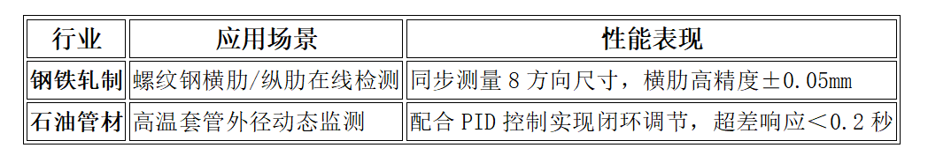 2. 某鋼廠案例顯示,在熱軋螺紋鋼產(chǎn)線(軋速≤120m/s)中實(shí)現(xiàn)**±0.02mm重復(fù)性精度**,并自動(dòng)補(bǔ)償熱膨脹誤差(需外接高溫計(jì))