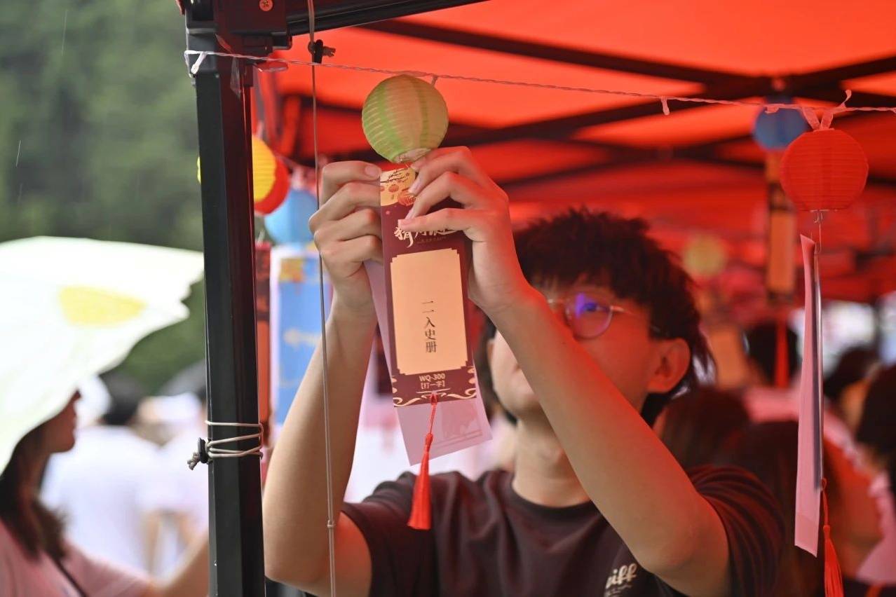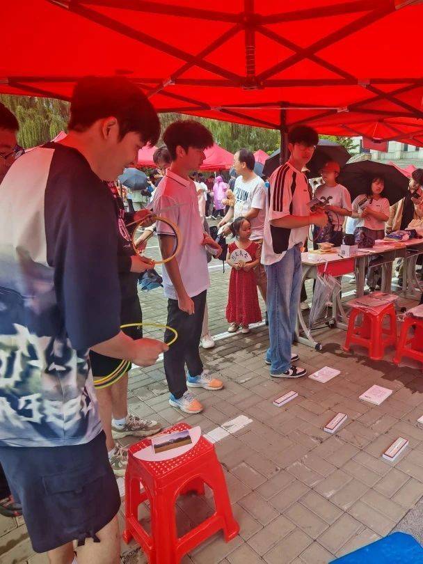 圈定金彩——套圈游戲趣味十足,東大定制背包、毛絨公仔、金屬書簽等特色獎品引發陣陣歡笑與喝彩