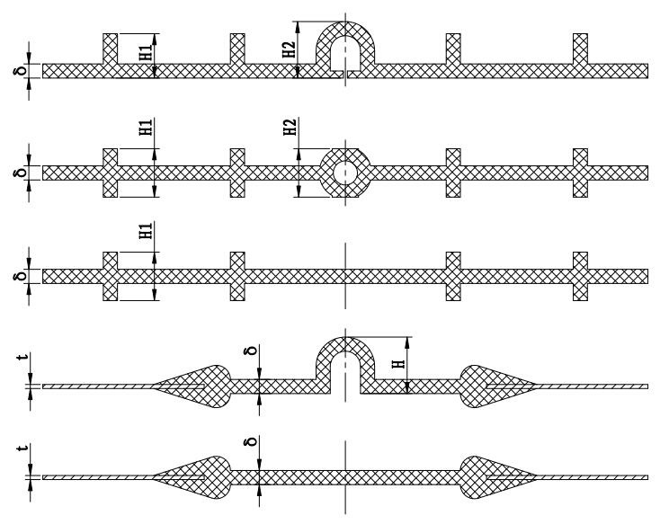 目前止水帶通過形狀分為不同的型號:橋型、山型、U型、Z型、P型、乙型、T型、H型、E型、Q型等各種形態(tài)的止水帶。
